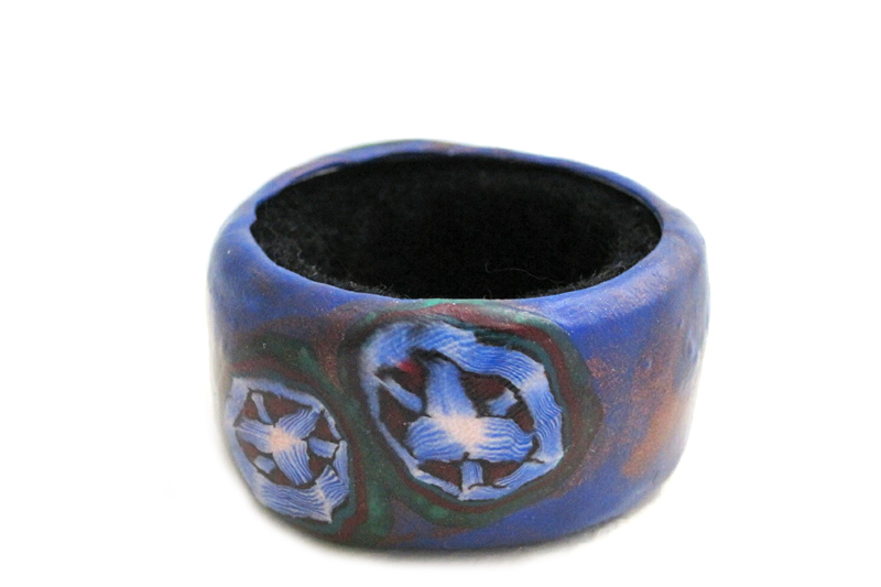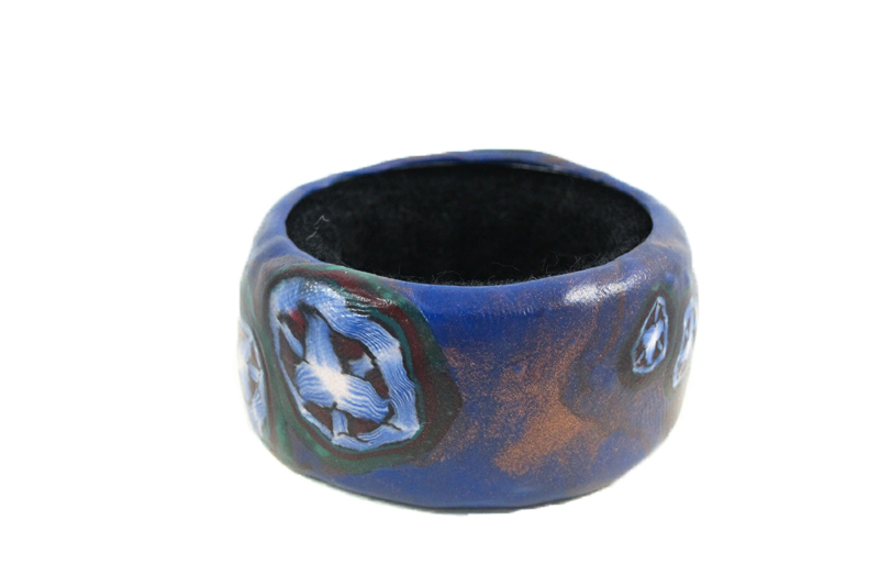 Este dibujo en concreto conlleva mucho trabajo, tiempo y dedicación. Este dibujo en miniatura está plagado de detalles alucinantes lo cual lo hace muy especial. Para conseguir este diseño he utilizado múltiples técnicas y colores. Concretamente, además del amasado de cada color por separado, algunas de las técnicas usadas son el laminado, degradado y unión de colores, composición a partir de distintas murrinas previamente elaboradas y posteriormente deformadas para dar lugar a un nuevo diseño… Todo ello unido a el fondo azul añil y los reflejos cobres,te harán experimentar una experiencia sensorial única .