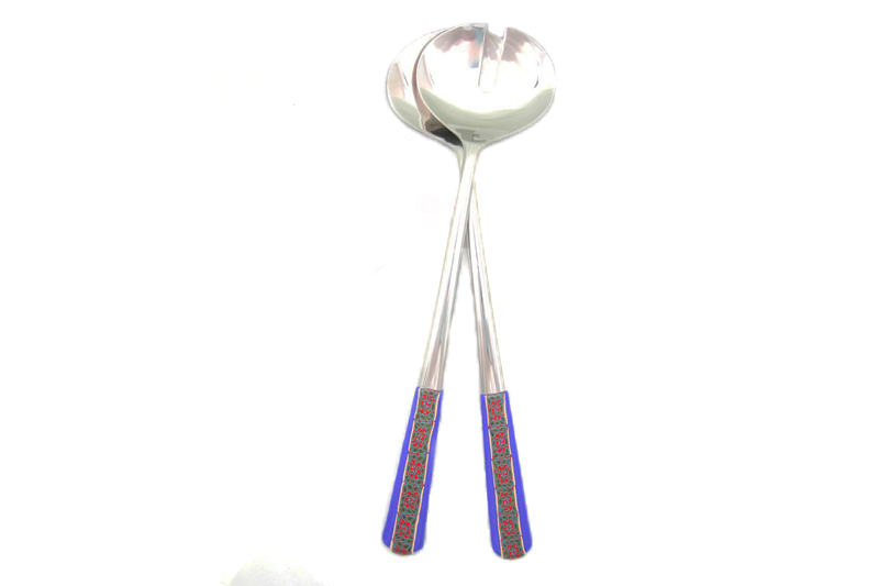 Cubiertos de ensalada de acero inoxidable. El mango está decorado con un diseño único e irrepetible, elaborado con arcilla polimérica.