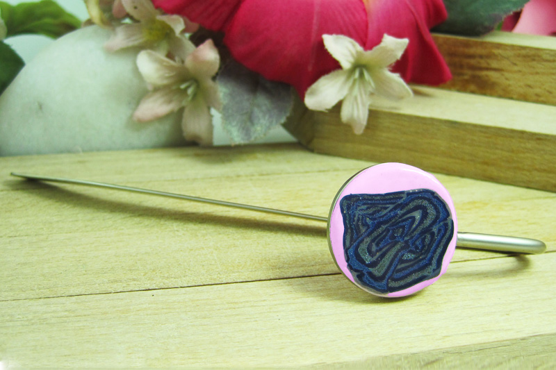 Marcapáginas Romántico, en el que predominan los tonos rosa pastel, azul y plata. Está diseñado y elaborado a mano con arcilla polimérica a base de ir trabajando cada arcilla por separado.